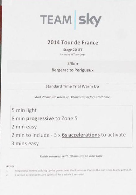 That’s the actual Team Sky Time Trial warmup, photo is of a reminder sheet that was posted on the side of the team bus.